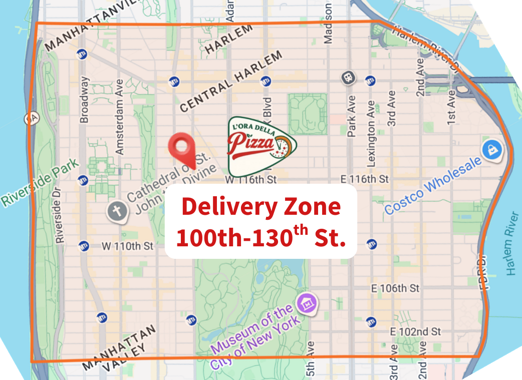 At L' Ora Della Pizza located at 2166 Frederick Douglass Blvd New York, NY, our specialty is New York Style Pizza & Authentic Italian Cuisine, premium quality! Choose from our selection of pizza, appetizers, salads, sandwiches, entrees, catering and much, much more!